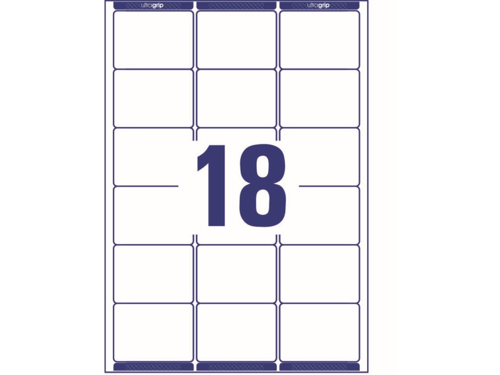 Balení obsahuje 1 800 ks etiket (18 ks na archu, 100 archů A4) určených pro černobílé a barevné laserové tiskárny.