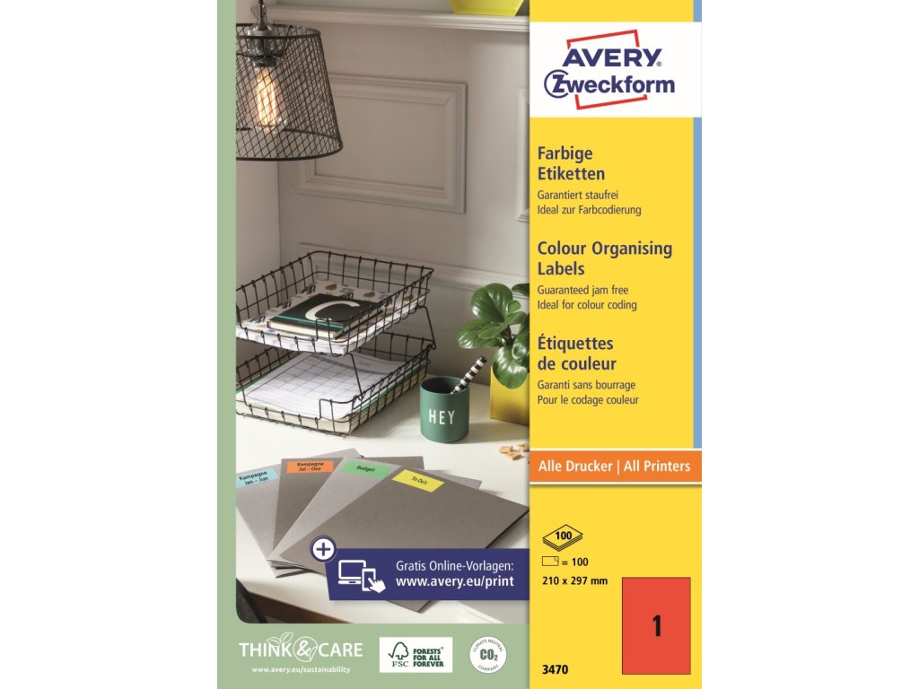 Červené samolepicí etikety | 210x297 mm | Avery Zweckform 3470