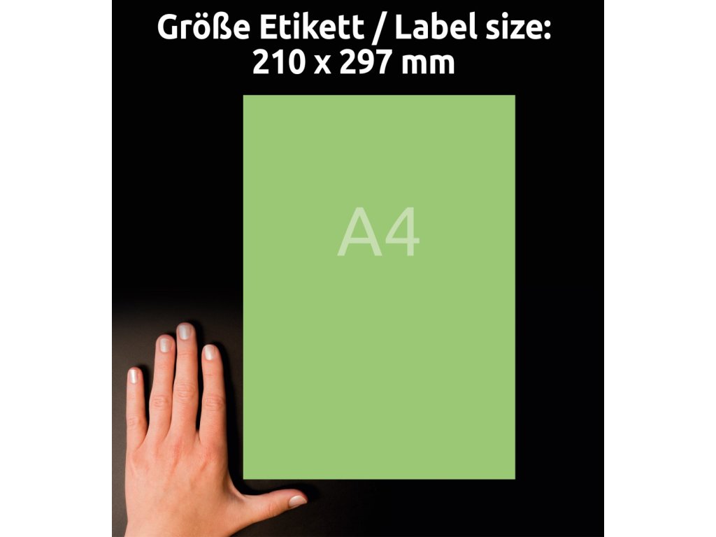 | Rozměr etikety: | 210 x 297 mm | A4 |