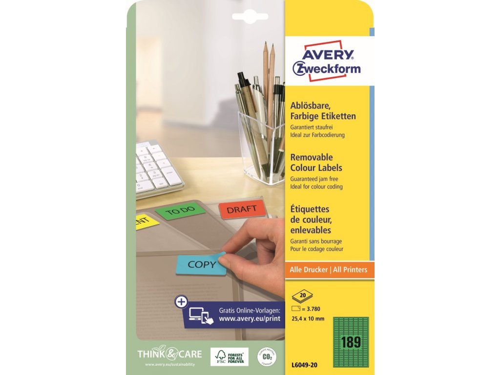 ✅ Objednejte si zelené snímatelné etikety Avery Zweckform L6049-20 u specialisty na etikety KALEDA, a.s. | etikety-stitky.cz
