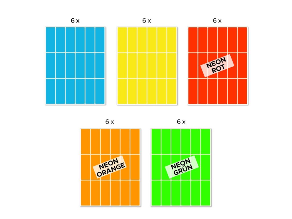 Balení obsahuje 540 ks etiket pro ruční popis v 5 barevných variantách po 108 ks.