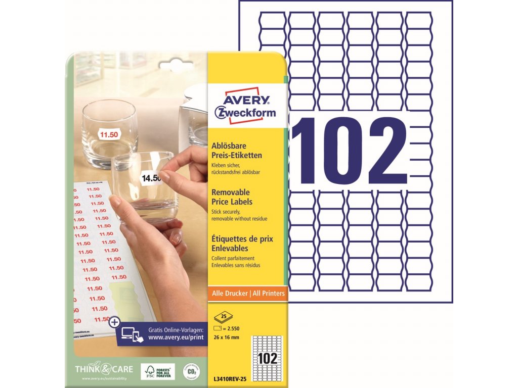Cenové etikety | snímatelné | Avery Zweckform L3410REV-25 + on-line software pro tisk etiket + šablona pro Word ke stažení