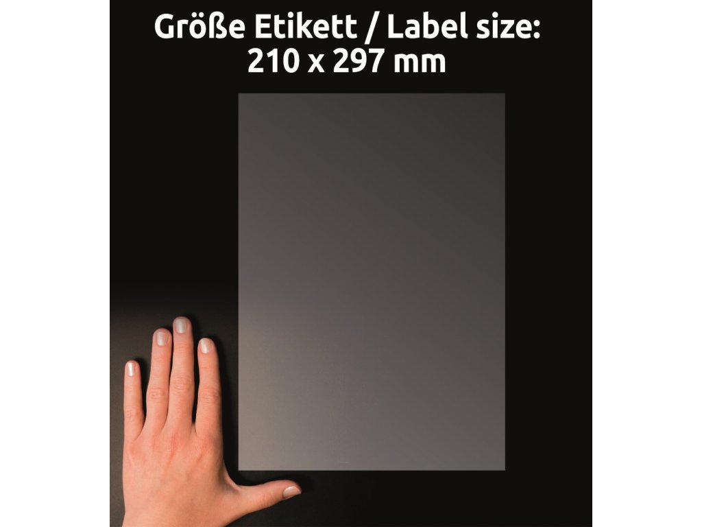 | Rozměr etikety: | 210 x 297 mm | A4 |