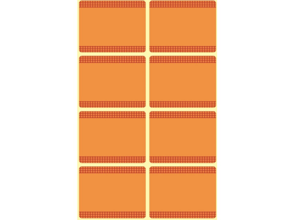 Balení obsahuje 40 ks (5 aršíků) oranžových etiket na ruční popis.