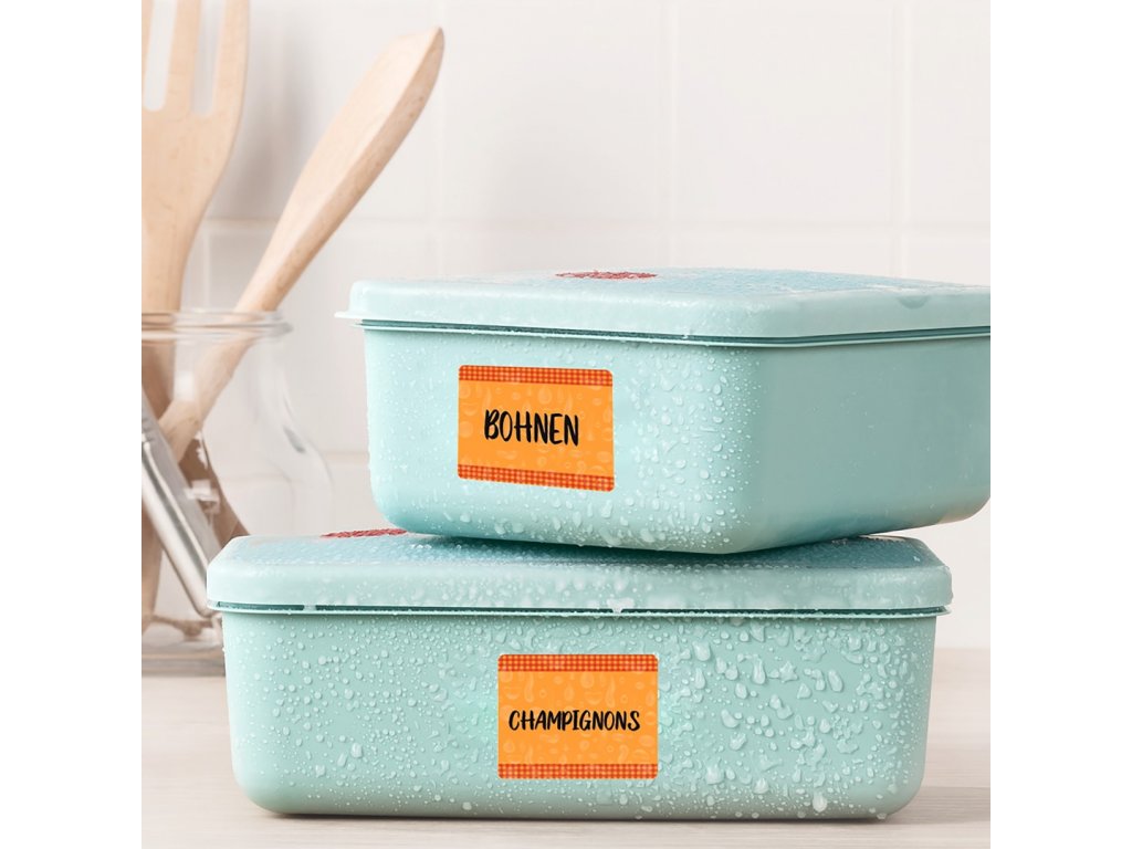 Samolepicí etikety do mrazničky Avery Zweckform 59370 o rozměru 36 x 28 mm jsou určené pro rychlý a přehledný popis zamrazovaných potravin bez použití tiskárny. Tyto oranžové papírové štítky umožňují snadný ruční popis permanentním popisovačem či běžnou propiskou a díky silnému lepidlu dobře přilnou k většině povrchů – plastové boxy, skleněné dózy i klasické mrazicí sáčky. Etikety jsou vyrobeny z papíru odolného vůči teplotám v rozsahu +28 °C až –20 °C, takže bez problémů zvládají podmínky běžných domácích mrazáků. Pomáhají udržet pořádek a přehled o uložených potravinách, což usnadňuje plánování a snižuje plýtvání jídlem.