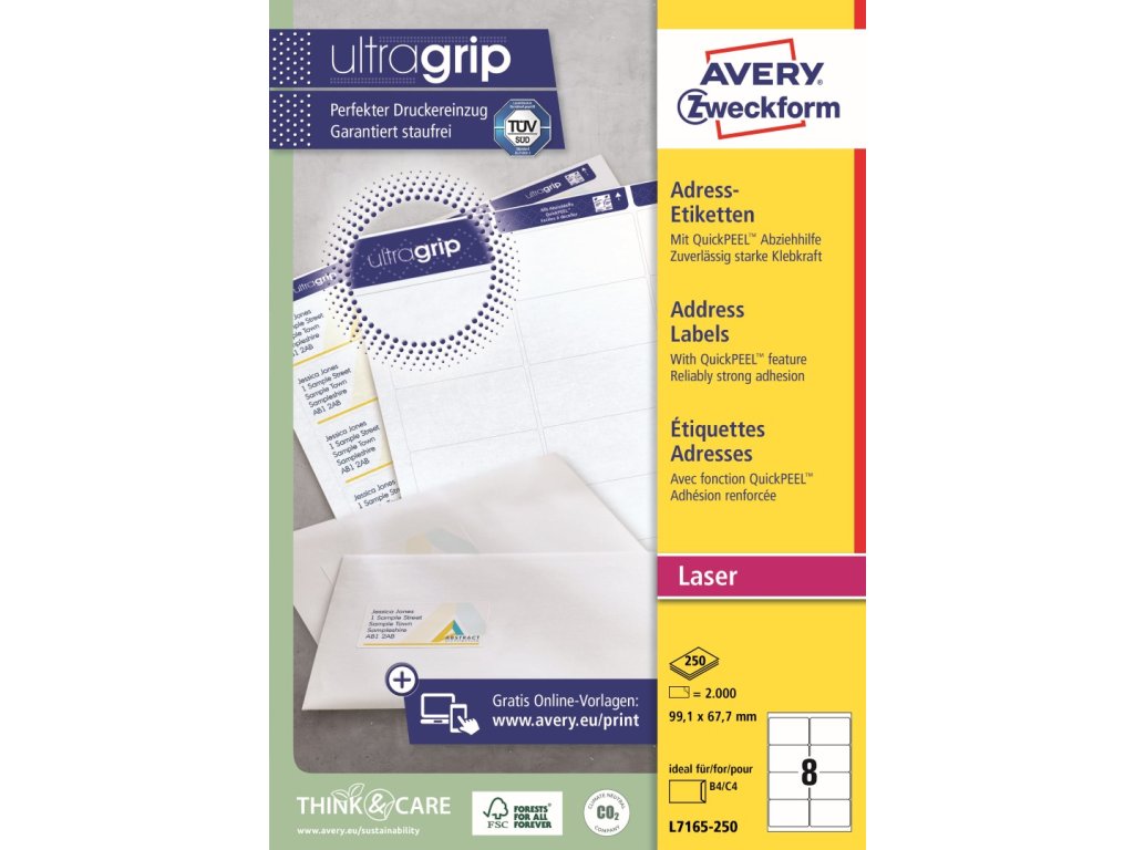 Etikety na zásilky | Avery Zweckform L7165-250 + online software pro tisk etiket + tiskové šablony ke stažení zdarma