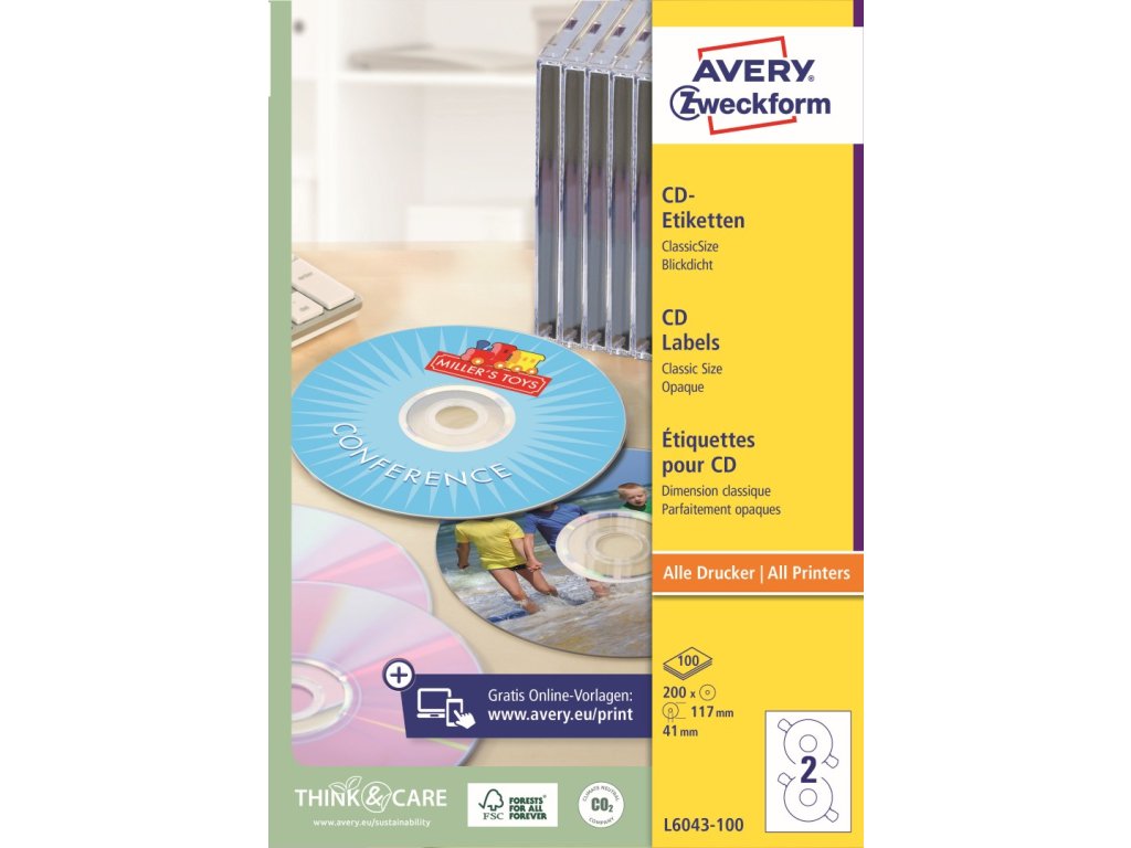✅ Objednejte si potisknutelné etikety na CD Avery Zweckform L6043-100 u specialisty na etikety KALEDA, a.s. | etikety-stitky.cz