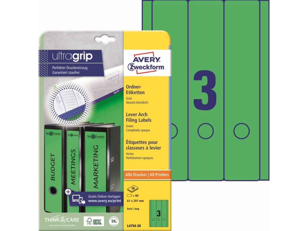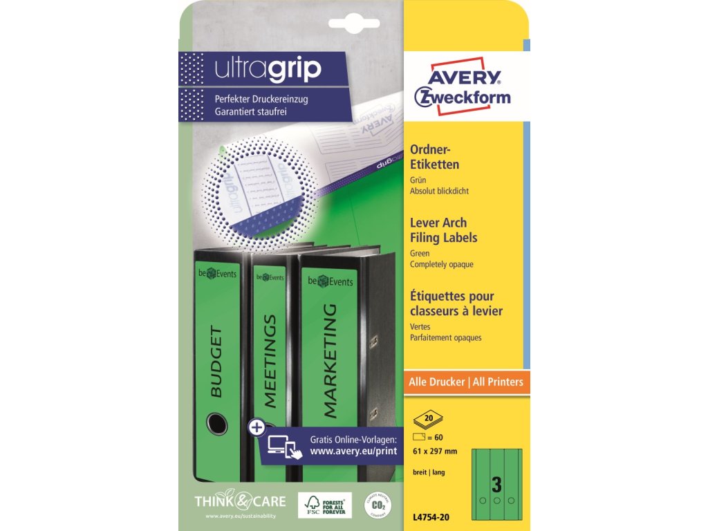 Společnost Avery Zweckform od roku 2014 používá pouze ekologickou elektřinu a plyn a od roku 2020 je certifikována jako klimaticky neutrální. Papír etiket je FSC® certifikovaný a pochází z odpovědných zdrojů.
