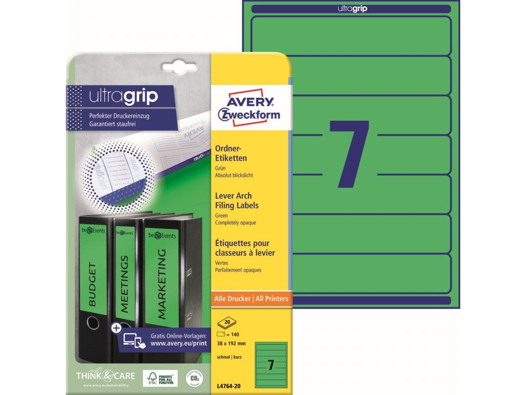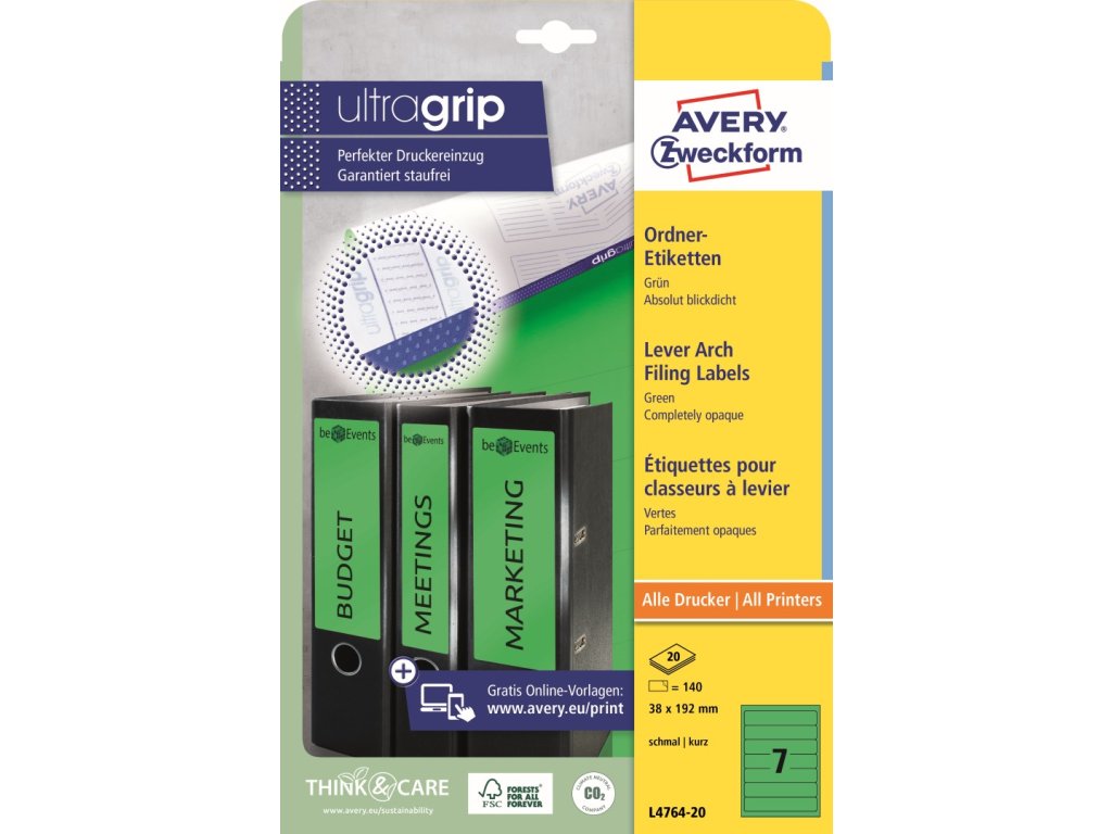 Zelené etikety na pořadače | 38x192 mm | Avery Zweckform L4764-20
