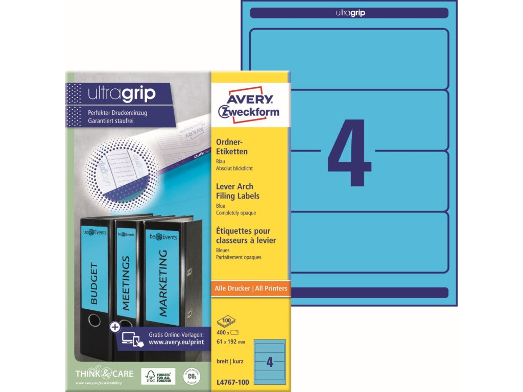 ✅ Objednejte si modré samolepicí etikety na pořadače Avery Zweckform L4767-100 u specialisty na etikety KALEDA, a.s. | etikety-stitky.cz