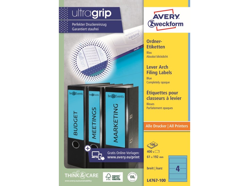 Společnost Avery Zweckform od roku 2014 používá pouze ekologickou elektřinu a plyn a od roku 2020 je certifikována jako klimaticky neutrální. Papír etiket je FSC® certifikovaný a pochází z odpovědných zdrojů.