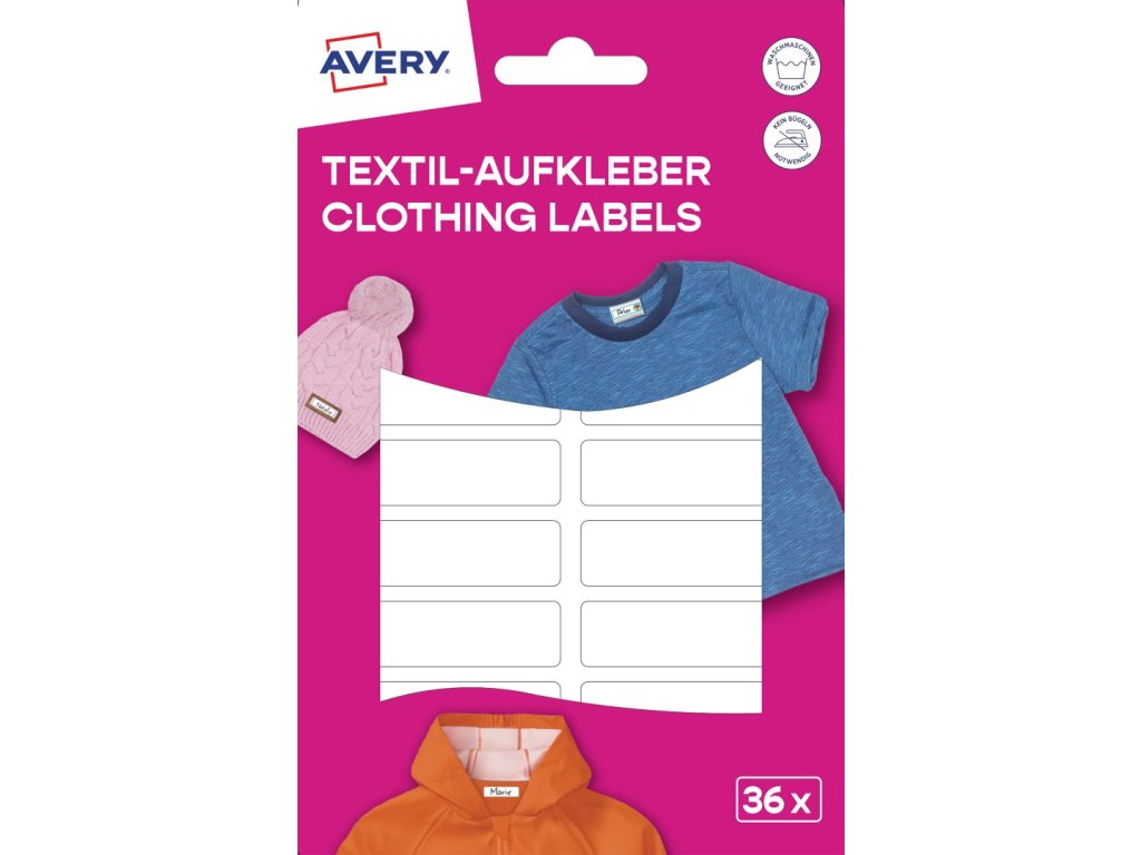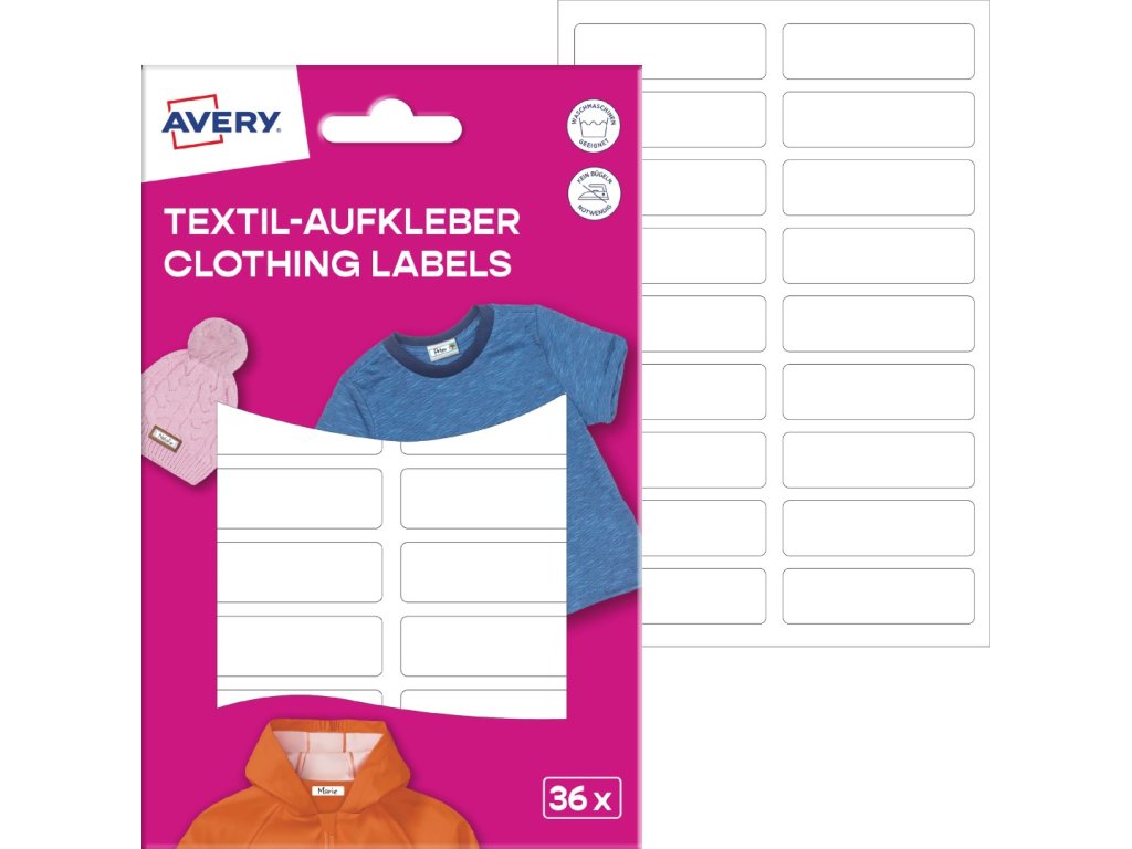 ✅ Objednejte si samolepicí štítky na oblečení Avery Zweckform ETVET36 u specialisty na etikety KALEDA, a.s. | etikety-stitky.cz