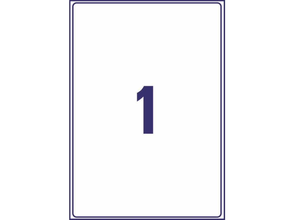 Balení obsahuje 100 ks etiket (1 ks na archu, 100 archů A4) určených pro černobílé a barevné laserové tiskárny.