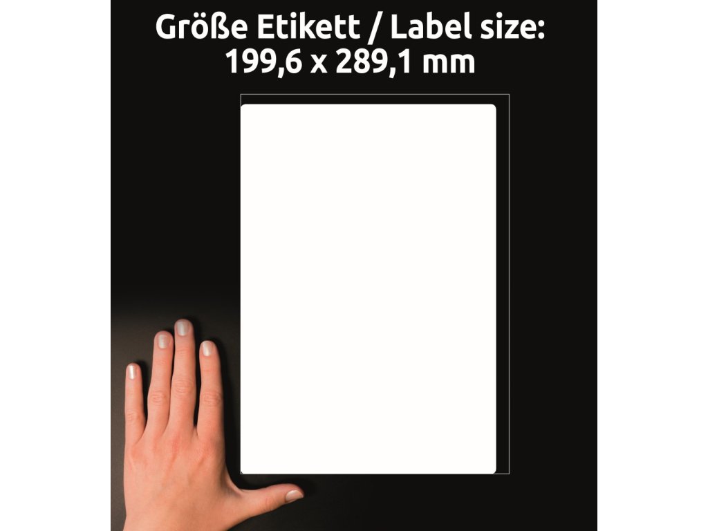Neprůhledné samolepicí etikety na balíky Avery Zweckform L7167B-100 o rozměru 199,6 x 289,1 mm jsou ideální jako adresní a logistické štítky, etikety na zásilky nebo přepravní štítky pro dopravní společnosti. Skvěle se hodí pro profesionální tisk adres, označování balíků, krabic a poštovních zásilek, ale i pro univerzální použití ve výrobě, obchodě a kanceláři. Tyto bílé extra silné papírové etikety s permanentním lepidlem mají vysokou a stálou lepivost na běžných površích jako je papír, karton, sklo nebo plast. Etikety jsou neprůhledné, spolehlivě zakryjí starý text nebo etiketu.