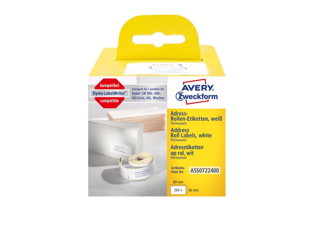Termoetikety na roli Avery Zweckform ASS0722400 jsou kompatibilní náhradou za originální štítky Dymo 99012, Dymo S0722400 a štítky Seiko SLP-2RLE.