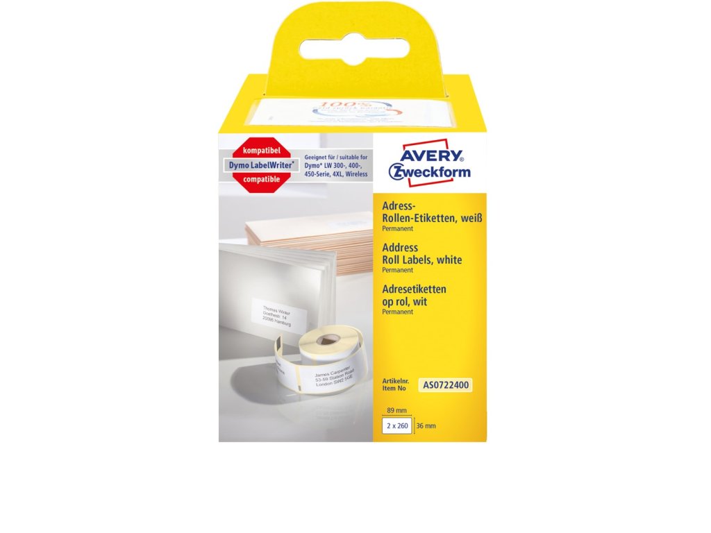Termoetikety na roli Avery Zweckform AS0722400 jsou kompatibilní náhradou za originální štítky Dymo 99012, Dymo S0722400 a štítky Seiko SLP-2RLE.