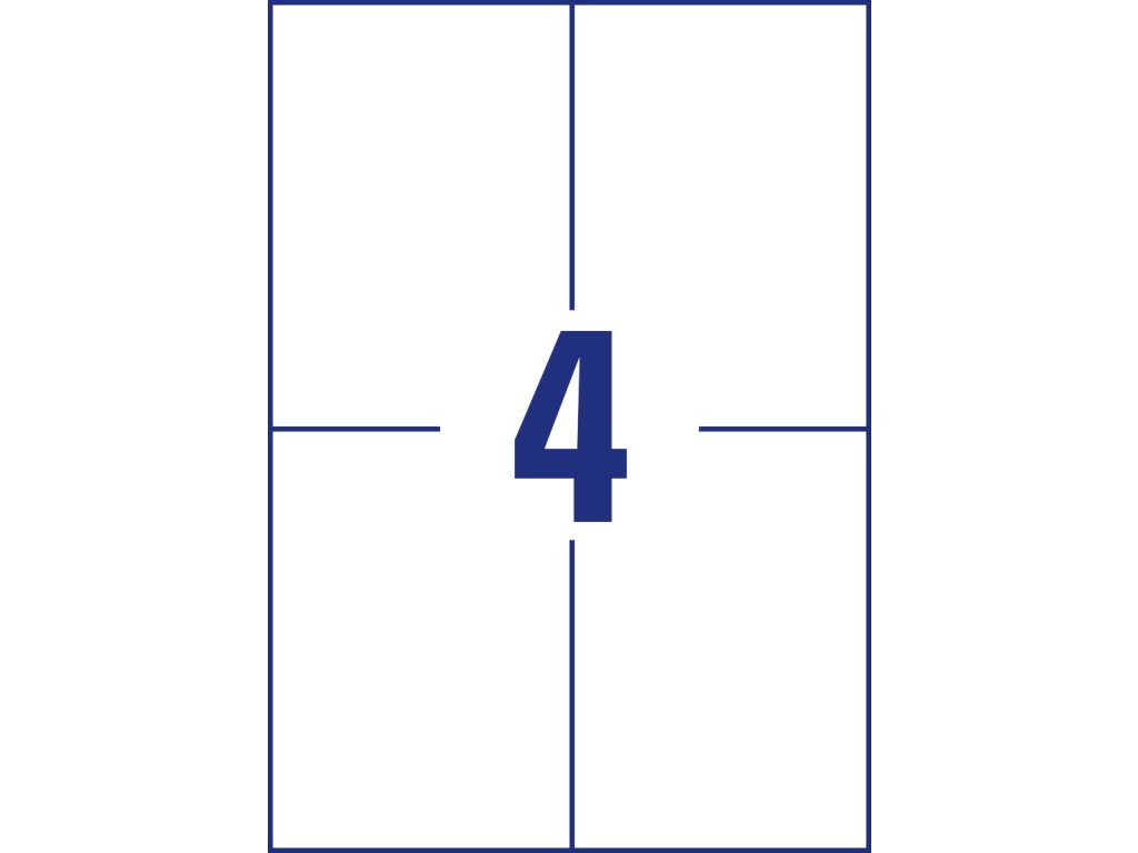 rozměr 148x105 mm, 25 archů A4, 100 ks štítků v balení (4 ks/arch), gramáž papíru: 200 g/m2, barva bílá. Typ tiskárny: černobílá laserová, barevná laserová, inkoustová.