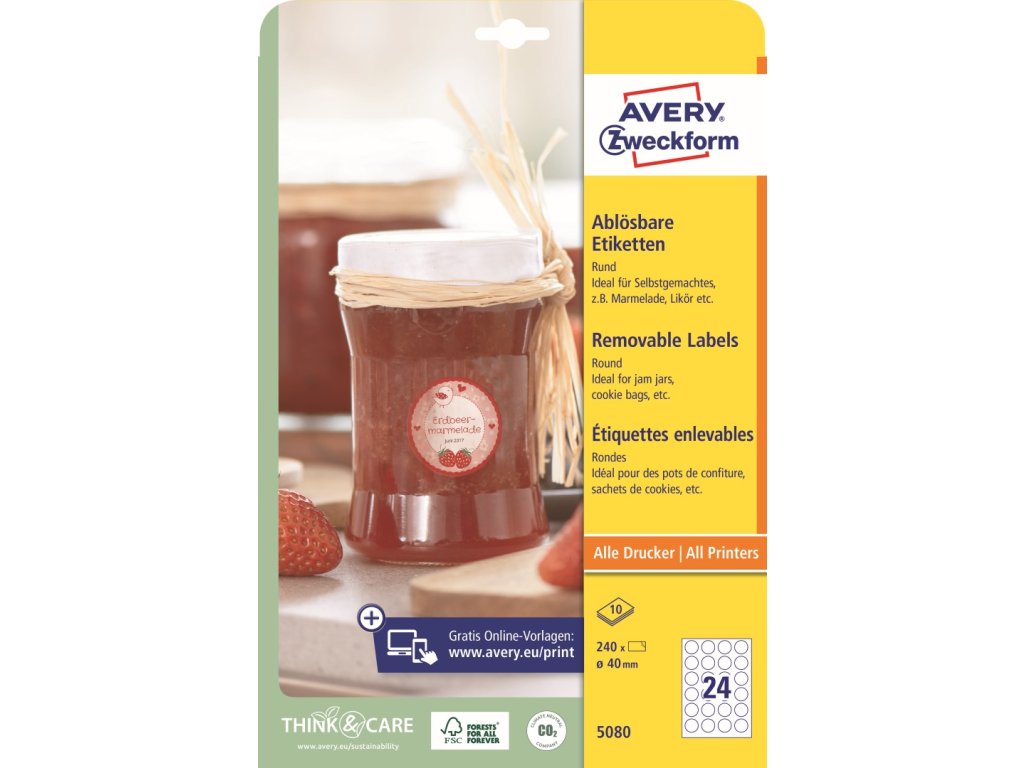 Kulaté etikety | snímatelné | Avery Zweckform 5080 + online software pro tisk etiket + tiskové šablony ke stažení zdarma