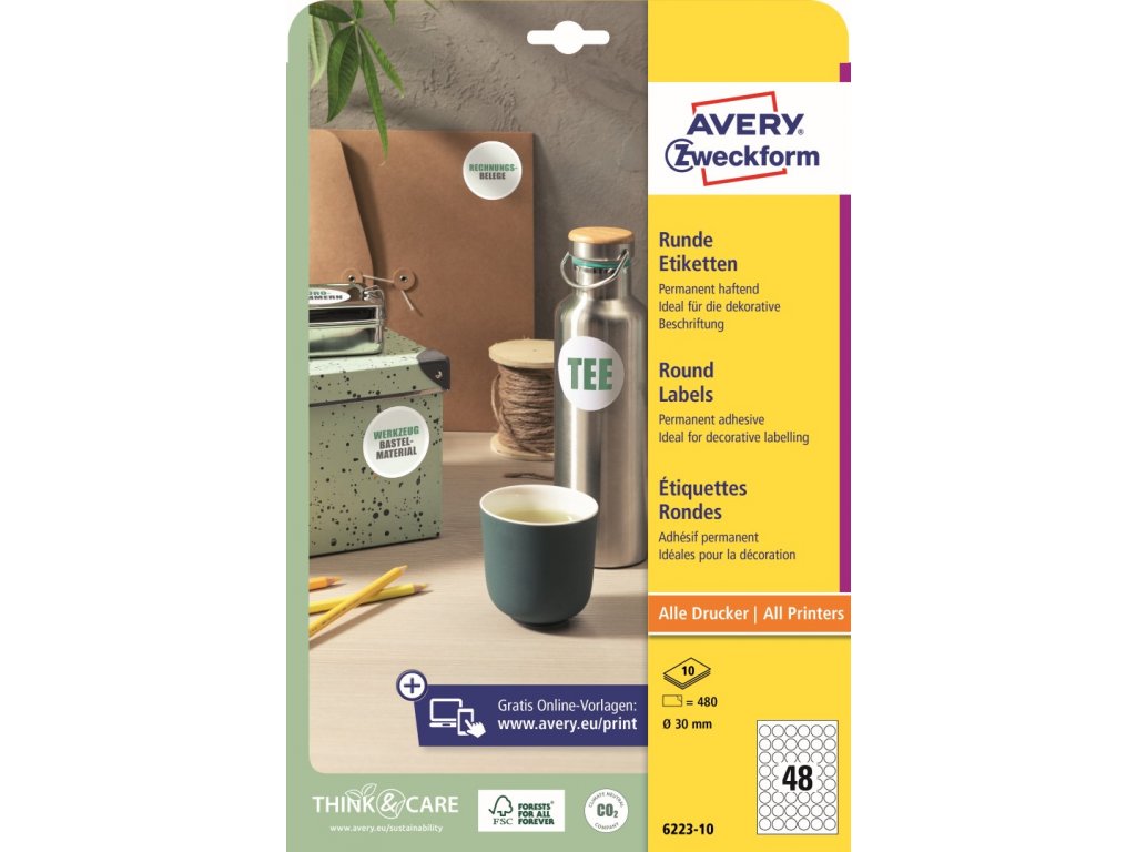 Kulaté etikety | Avery Zweckform 6223-10 + online software pro tisk etiket + tiskové šablony ke stažení zdarma
