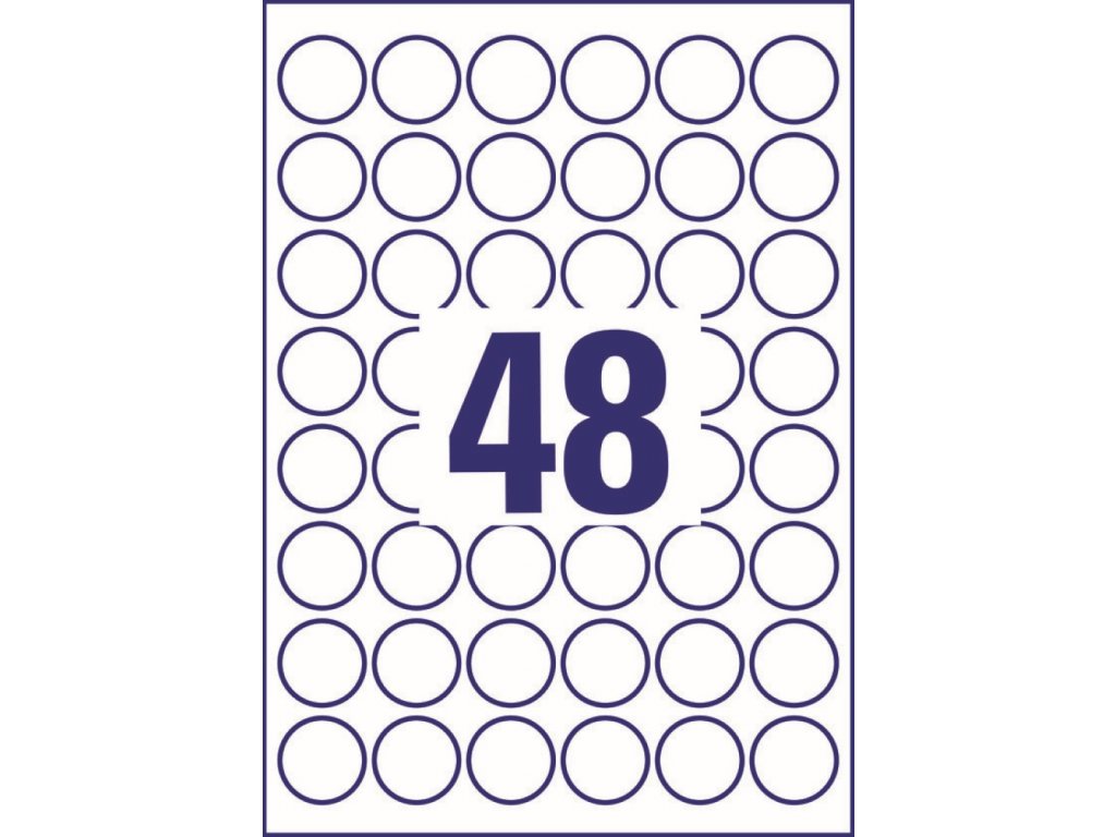 Balení obsahuje 480 ks etiket (48 ks na archu, 10 archů A4) pro laserové i inkoustové tiskárny.