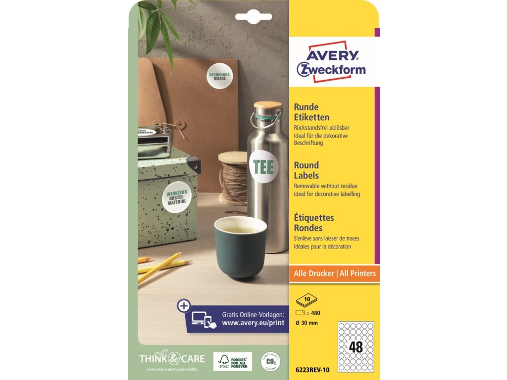 Kulaté etikety | snímatelné | Avery Zweckform 6223REV-10 + online software pro tisk etiket + tiskové šablony ke stažení zdarma