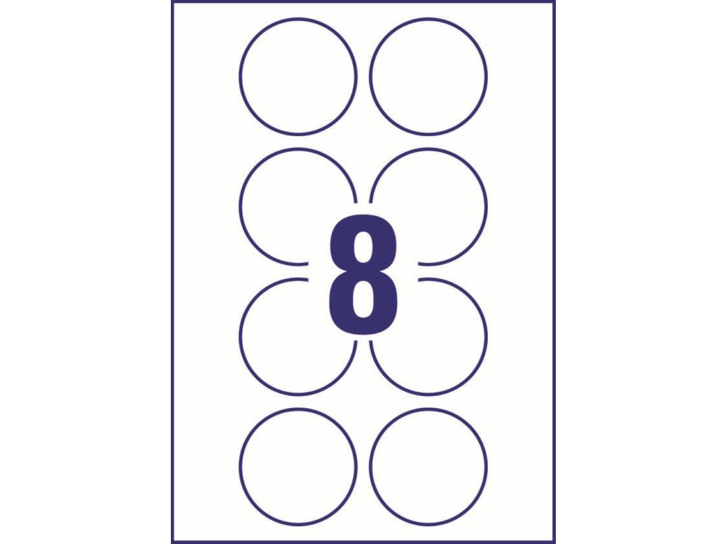 Balení obsahuje 80 ks etiket (8 ks na archu, 10 archů A4) pro laserové i inkoustové tiskárny.