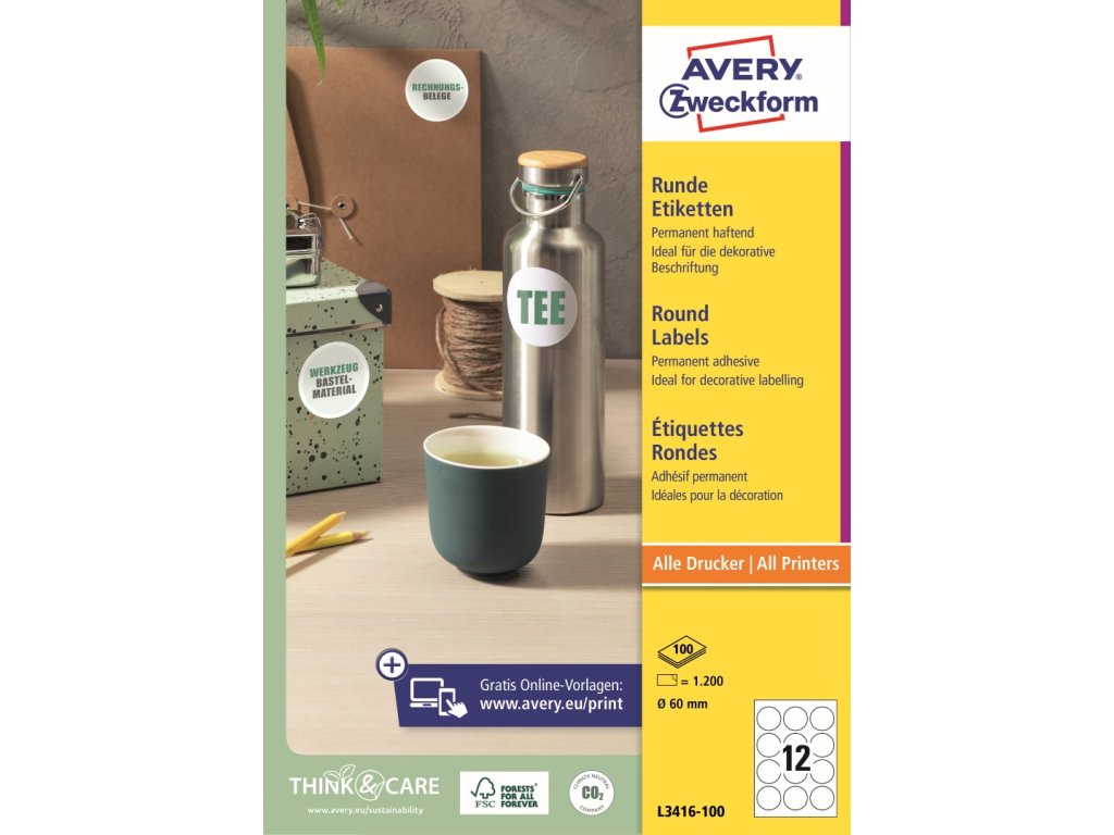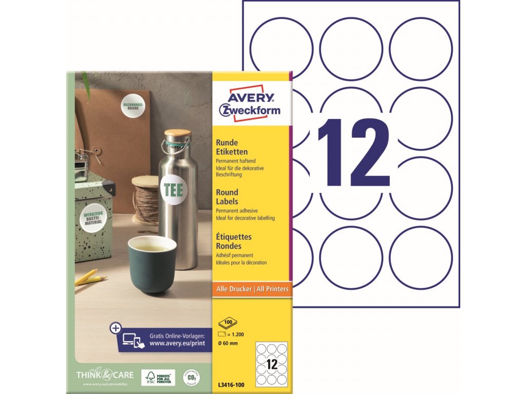 ✅ Objednejte si samolepicí etikety Ø 60 Avery Zweckform L3416-100 u specialisty na etikety KALEDA, a.s. | etikety-stitky.cz