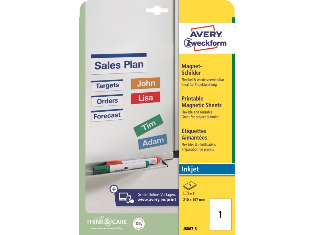 ✅ Objednejte si potisknutelné magnetické štítky Avery Zweckform J8867-5 u specialisty na etikety KALEDA, a.s. | etikety-stitky.cz