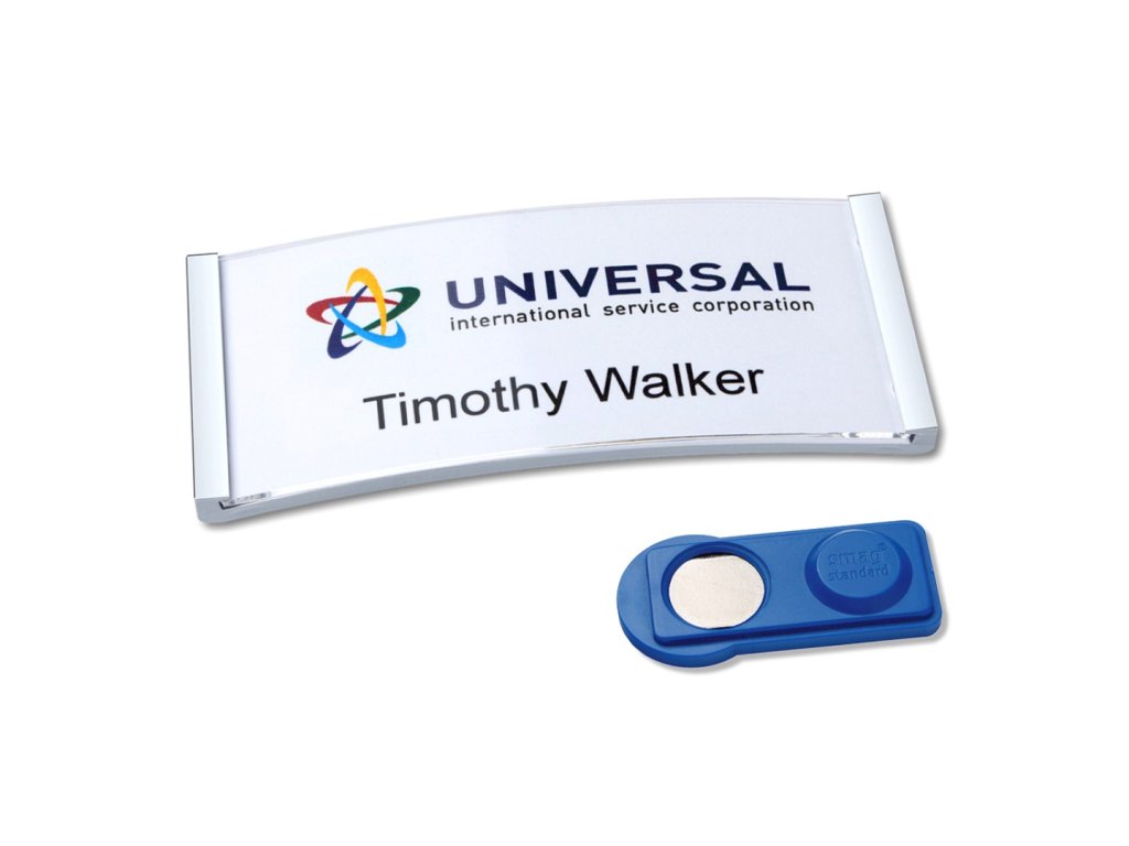 Sada obsahuje: 5 ks magnetických jmenovek (68x22 mm, barva okrajů nerez ocel), 5 ks magnetů smag® a 24 ks bílých potisknutelných papírových štítků (64x22 mm, 1 arch A4, gramáž 190 pro laserové i inkoustové tiskárny.