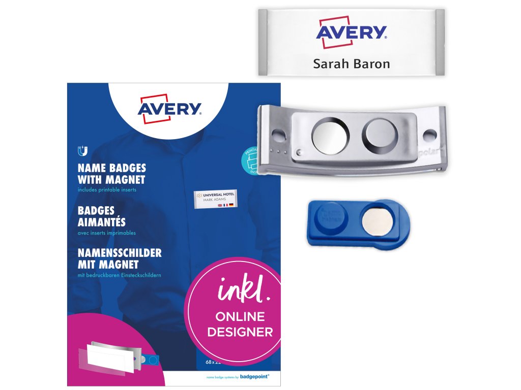 Magnetické jmenovky | sada | Avery Zweckform POL20MA66-5DR + online software pro tisk jmenovek + tisková šablona ke stažení zdarma