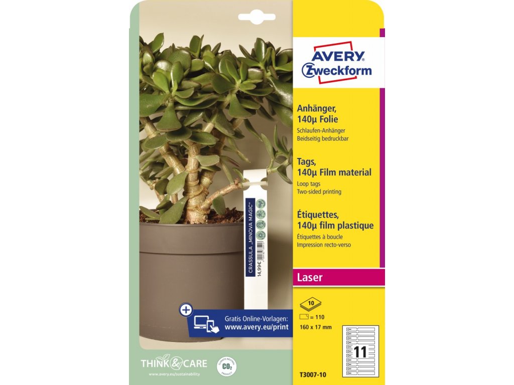 Potisknutelné návěsky | Avery Zweckform T3007-10 + online software pro tisk štítků + tisková šablona ke stažení zdarma