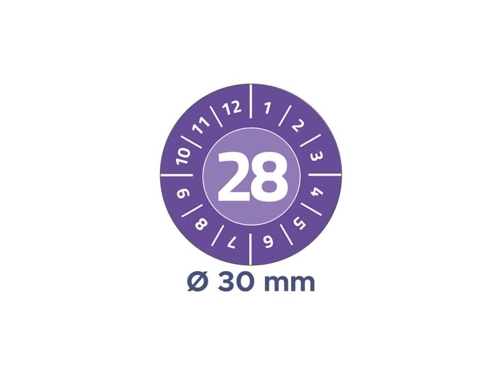 Předtištěné neodlepitelné akrylové štítky Avery Zweckform 6946-2028 o průměru 30 mm s čísly měsíců 1–12 a letopočtem 2028 jsou ideální jako revizní, inspekční nebo kontrolní plomby. Umožňují snadno zaznamenat měsíc a rok revize – popisem permanentním popisovačem nebo označením pomocí děrovacích kleští. Štítky jsou přehledné, mezinárodně srozumitelné a umožňují rychlou identifikaci termínů revizí či údržby. Pokus o neoprávněné odstranění je ihned viditelný – materiál se při odlepování rozpadne a etiketu lze sejmout pouze po malých částech. Tyto fialové akrylové etikety s permanentním lepidlem jsou odolné vůči vodě, oleji, rozpouštědlům, čisticím a dezinfekčním prostředkům.