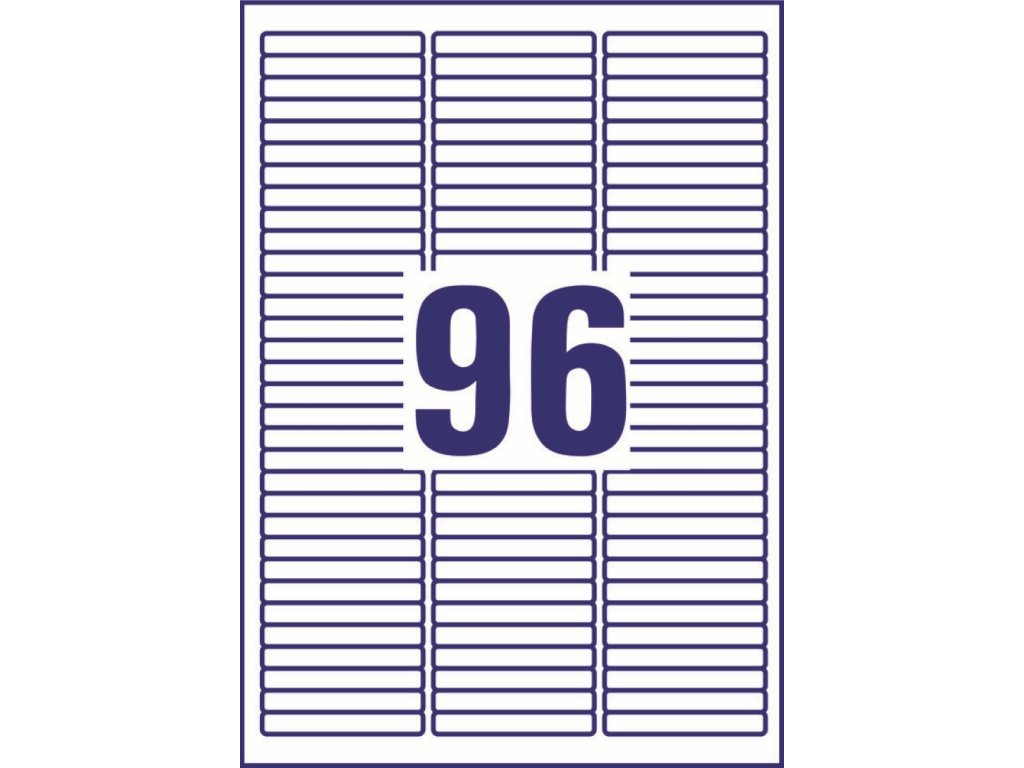 Balení obsahuje 2 400 ks snímatelných etiket (96 ks na archu, 25 archů A4) pro laserové i inkoustové tiskárny.