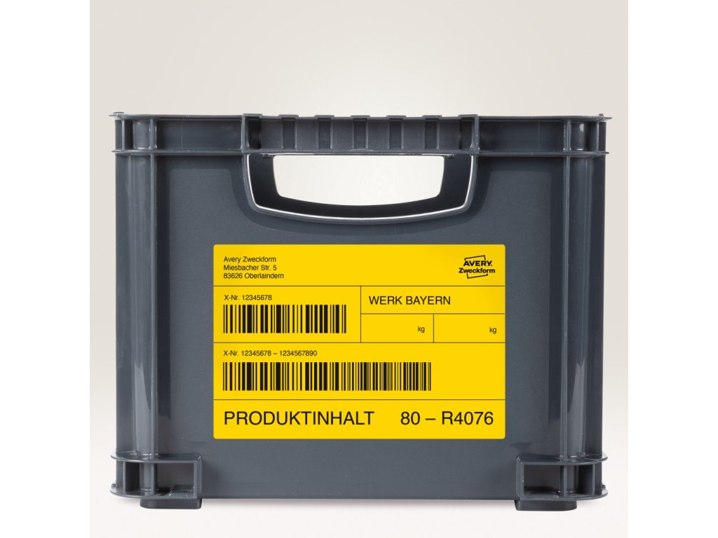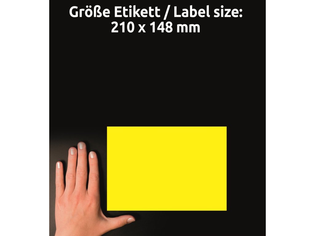 Odolné samolepicí štítky Avery Zweckform L6130-20 o rozměru 210 x 148 mm jsou určeny do náročných vnitřních i venkovních podmínek. Jsou ideální pro trvalé a dlouhodobé značení majetku, výrobků, skladových regálů, palet, zařízení či nářadí. Díky vysoké a stálé lepivosti spolehlivě drží na většině běžných povrchů. Tyto žluté polyesterové etikety (PET) s permanentním lepidlem jsou odolné vůči stříkající vodě, nečistotám, olejům, mastnotě, roztržení, UV záření a teplotám od -20 °C do +80 °C.