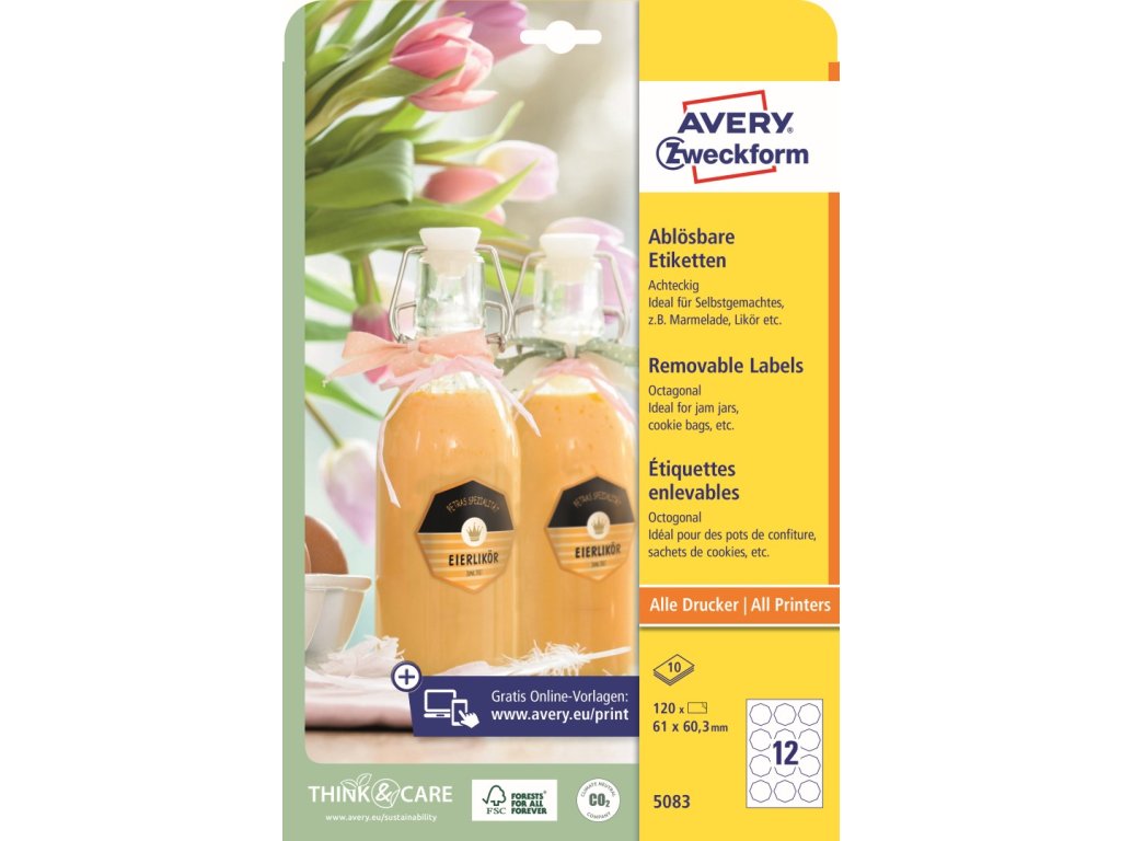 Osmihranné etikety | snímatelné | Avery Zweckform 5083 + online software pro tisk etiket + tiskové šablony ke stažení zdarma