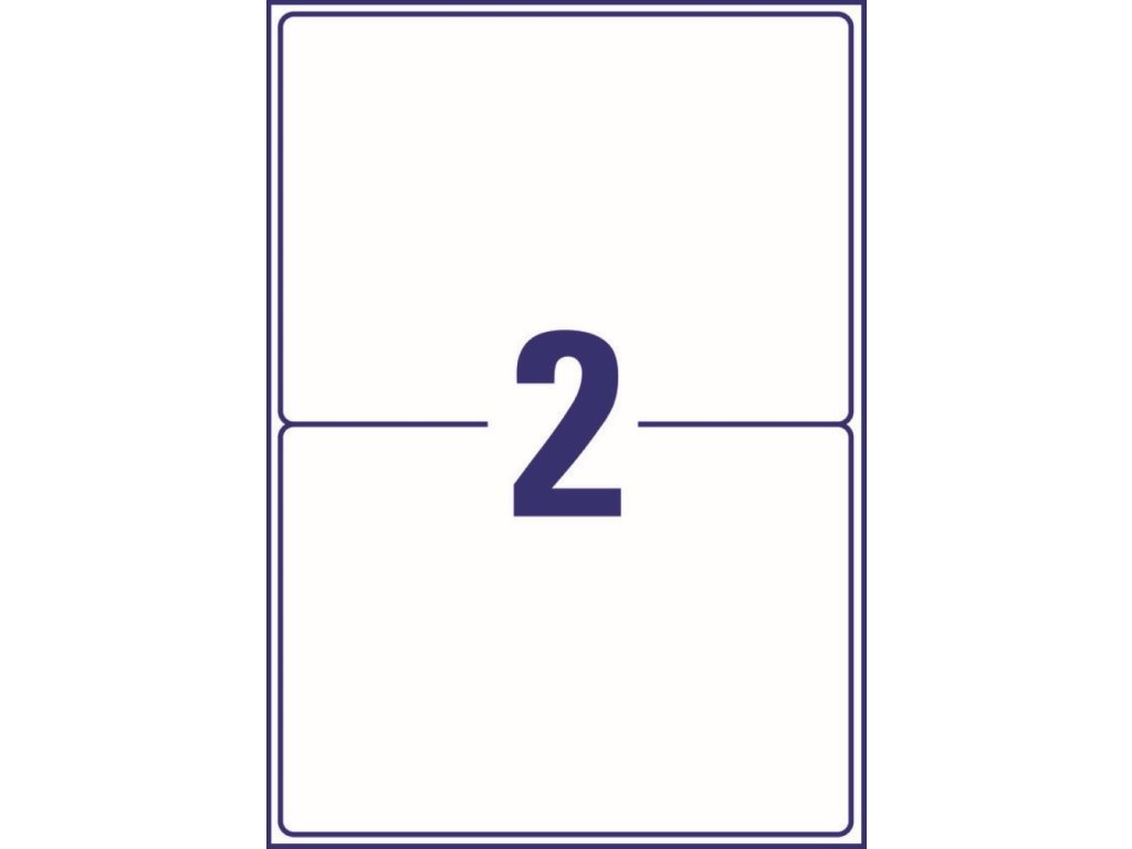 Balení obsahuje 600 ks etiket (2 ks na archu, 300 archů A4) pro laserové i inkoustové tiskárny.