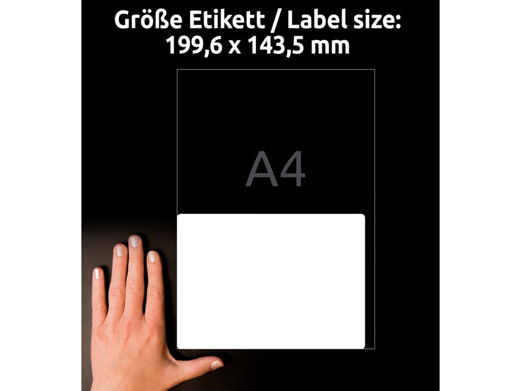 | Rozměr etikety: | 199,6 x 143,5 mm | "A5" |