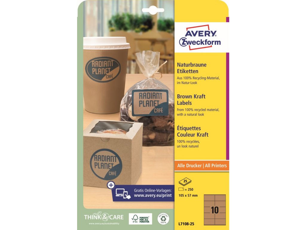 Přírodní hnědé etikety | Avery Zweckform L7108-25 + online software pro tisk etiket + tiskové šablony ke stažení zdarma