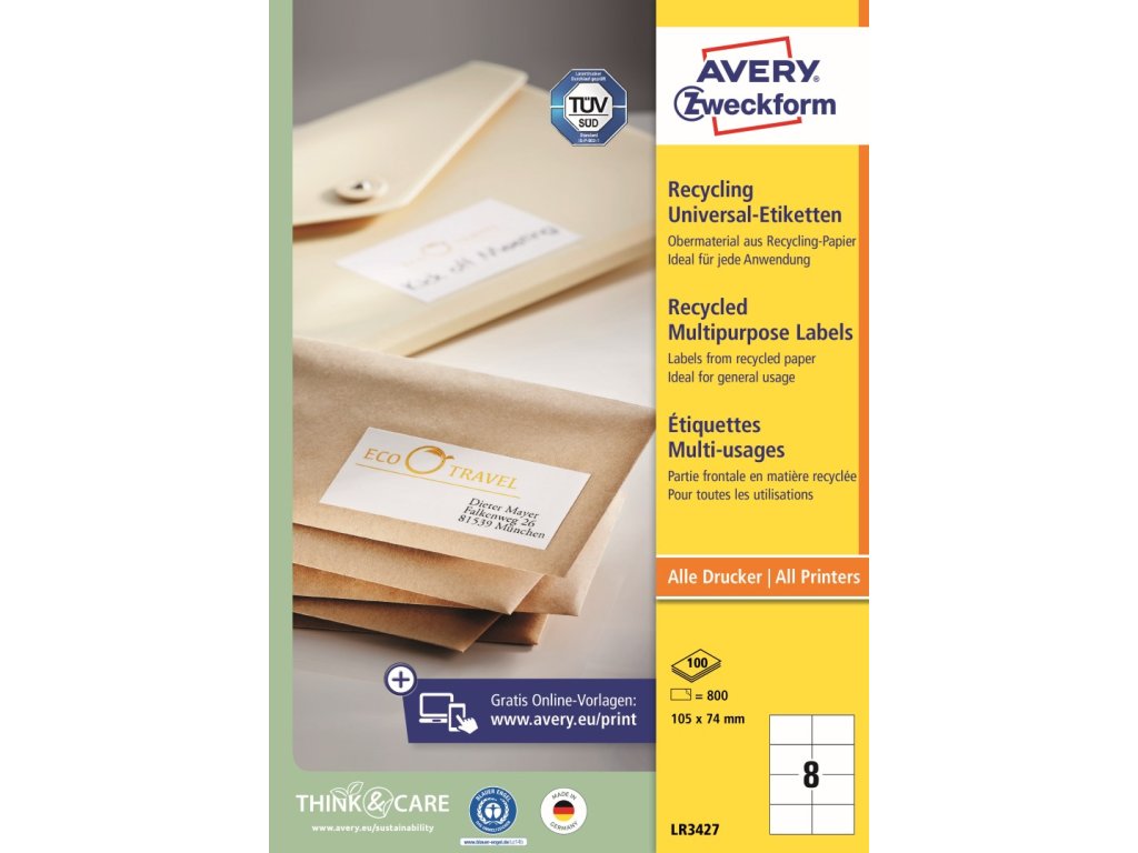 Samolepící etikety | recyklované | Avery Zweckform LR3427 + online software pro tisk etiket + tiskové šablony ke stažení zdarma