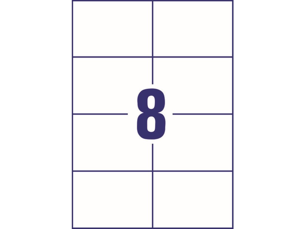 Balení obsahuje 800 ks etiket (8 ks na archu, 100 archů A4) pro laserové i inkoustové tiskárny.