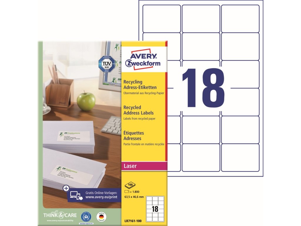 Adresní etikety | recyklované | Avery Zweckform LR7161-100 + online software pro tisk etiket + tiskové šablony ke stažení zdarma