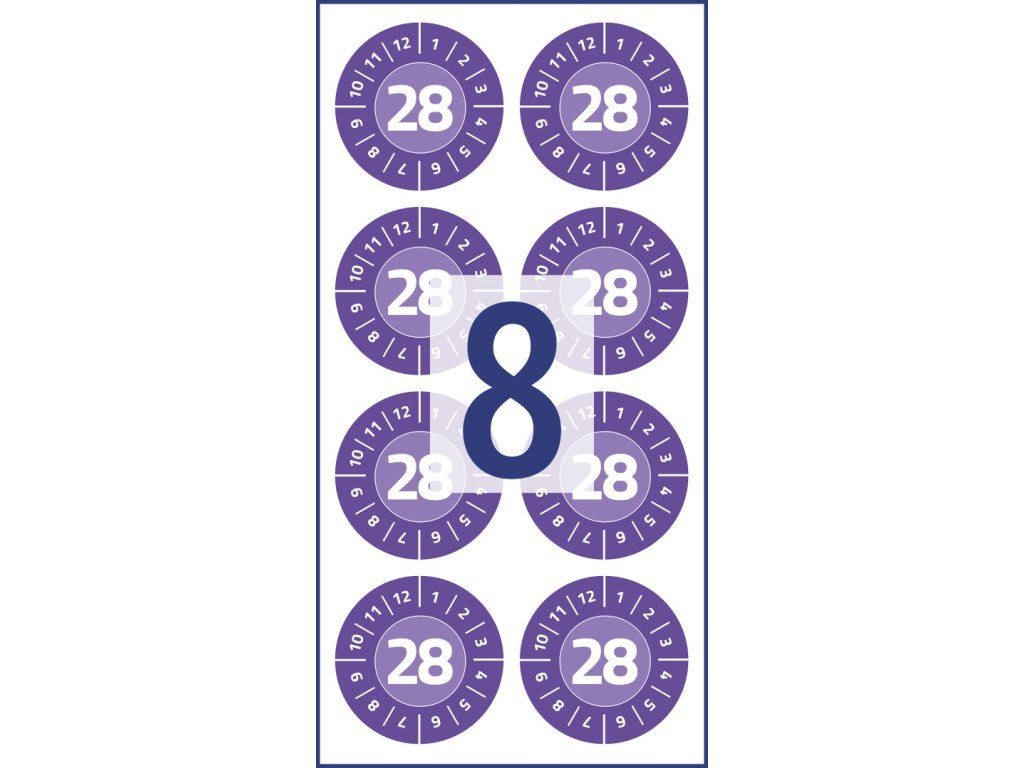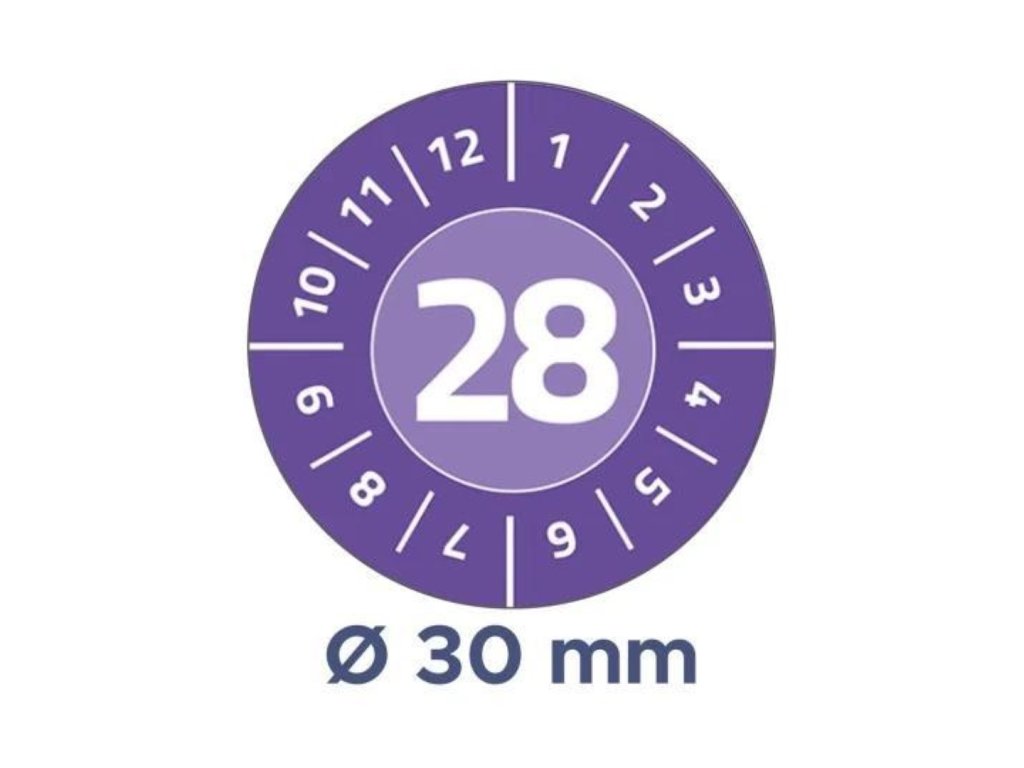 Předtištěné vinylové samolepicí štítky Avery Zweckform 6944-2028 o průměru 30 mm s čísly měsíců 1–12 a letopočtem 2028 jsou ideální jako revizní, inspekční nebo kontrolní plomby. Umožňují snadno zaznamenat měsíc a rok revize – popisem permanentním popisovačem nebo označením pomocí děrovacích kleští. Štítky jsou přehledné, mezinárodně srozumitelné a umožňují rychlou identifikaci termínů revizí či údržby. Díky vysoké přilnavosti spolehlivě drží na různých površích a jsou vhodné pro vnitřní i venkovní použití. Tyto fialové vinylové etikety s permanentním lepidlem jsou odolné vůči vodě, oleji, rozpouštědlům, čisticím a dezinfekčním prostředkům a teplotám od −20 °C do +80 °C.