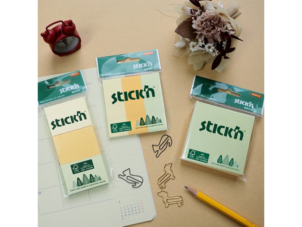Společnost Hopax patří mezi přední světové výrobce samolepicích papírenských produktů. Nabízí široký sortiment bločků, kostek, záložek i bloků pro kancelář, školu i domácnost. Produkty Stick’n spojují inovativní technologie, kvalitní materiály a příznivou cenu. Samolepící bločky Stick'n by Hopax s označením FSC™ jsou ze 100% vyrobeny z papíru s certifikátem FSC™, tedy v souladu se zásadami udržitelného lesního hospodářství, používají lepidlo na vodní bázi a obal produktu je dále recyklovatelný.
