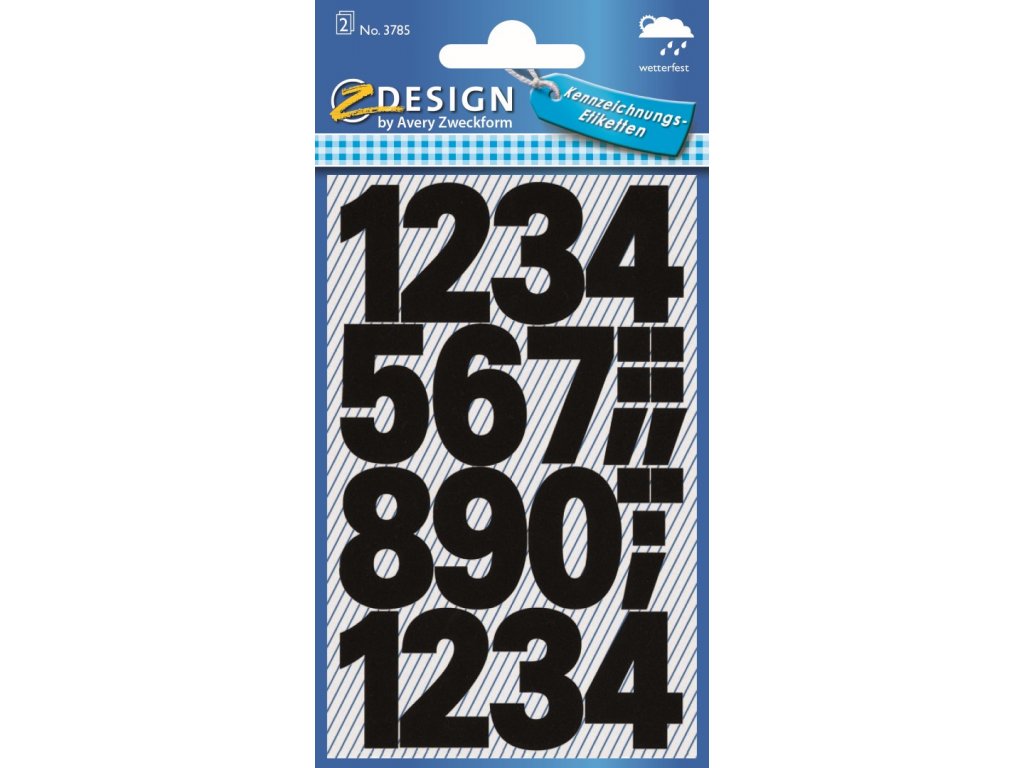 Samolepicí číslice Avery Zweckform 3785 jsou určeny pro rychlé, čisté a trvanlivé označování nejrůznějších předmětů v interiéru i exteriéru. Tyto černé číslice jsou vyřezané z vysoce odolné fólie a díky silnému permanentnímu lepidlu spolehlivě drží na nejrůznějších površích. Jejich hlavní výhodou je plná odolnost vůči povětrnostním vlivům, díky čemuž zůstávají dobře čitelné i při dlouhodobém venkovním použití. Jsou vhodné pro označení schránek, dveří, skladových pozic, vybavení, nářadí a různých domácích i kancelářských potřeb. Jednotlivé číslice jsou ve fontu Univers Bold 100 pt s výškou 25 mm. Avery Zweckform jako dlouholetý specialista na samolepicí etikety nabízí široký výběr písmen a číslic v různých barvách a velikostech.
