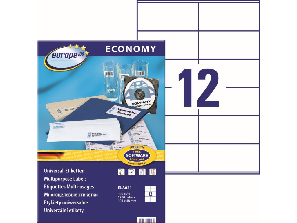 Univerzální samolepicí štítky Europe100 ELA021 o rozměru 105 x 48 mm nabízejí spolehlivé a široké využití ve výrobě, obchodě i kanceláři. Tyto bílé papírové etikety s permanentním lepidlem mají vysokou a stálou lepivost na běžných površích, jako je papír, karton, sklo nebo plast. Jsou ideální pro popis výrobků, označování zboží, jako adresní štítky, samolepky na zásilky, přepravní etikety a mnoho dalších aplikací. Print etikety Avery Zweckform Europe100 poskytují profesionální řešení za přesvědčivou cenu. V naší nabídce najdete mnoho dalších rozměrů těchto oblíbených etiket.