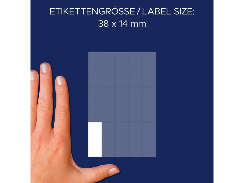 Samolepicí štítky na ruční popis Avery Zweckform 3076 o rozměru 38 x 14 mm jsou ideální pro rychlé, jednoduché a přehledné značení bez použití tiskárny. Tyto bílé papírové etikety s permanentním lepidlem lze snadno popisovat tužkou, propiskou nebo fixem a skvěle se hodí pro kancelář, obchod i domácnost. Spolehlivě drží na všech běžných typech povrchů. V naší nabídce naleznete také další rozměry a velikosti balení těchto oblíbených etiket.