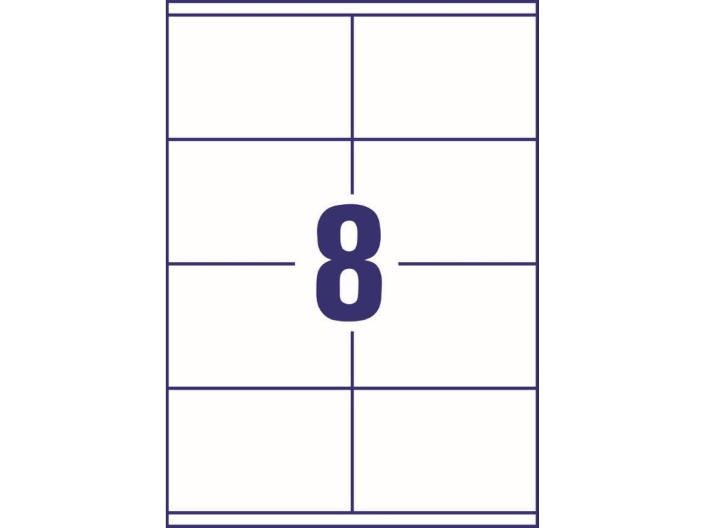 Balení obsahuje 800 ks etiket (8 ks na archu, 100 archů A4) pro laserové i inkoustové tiskárny.