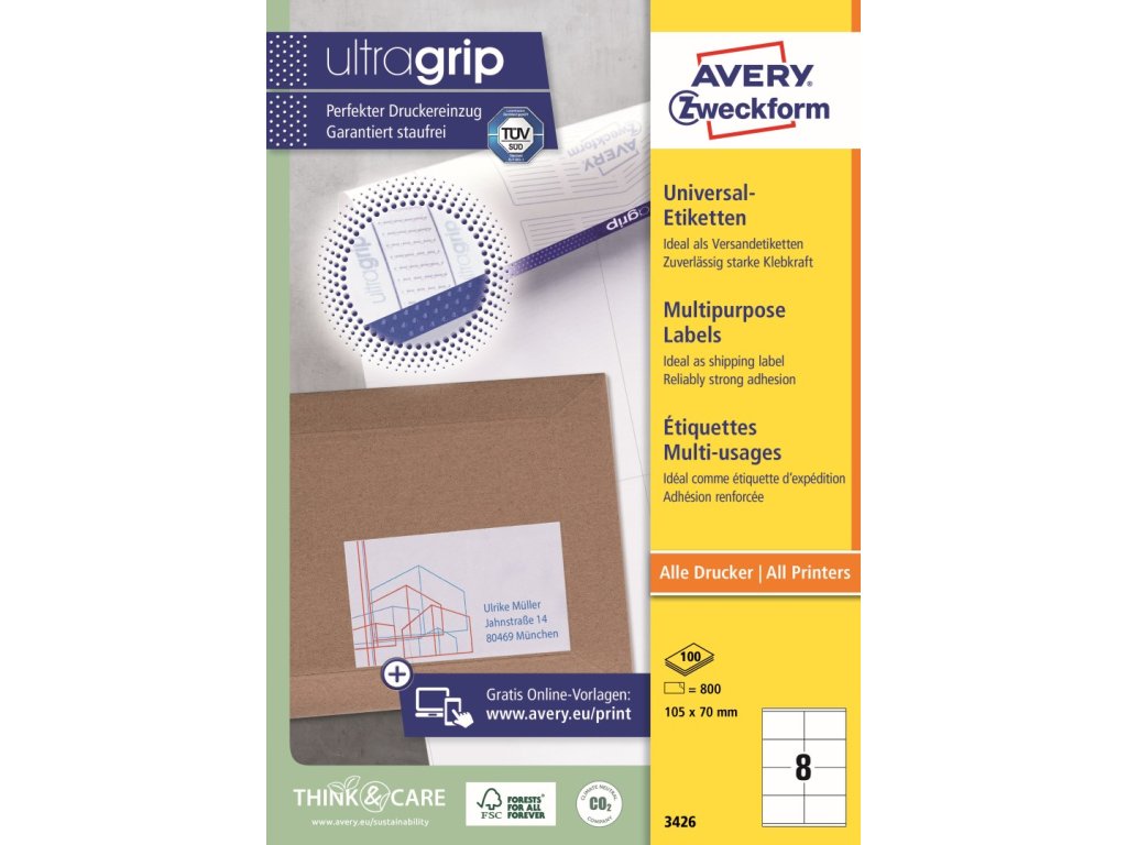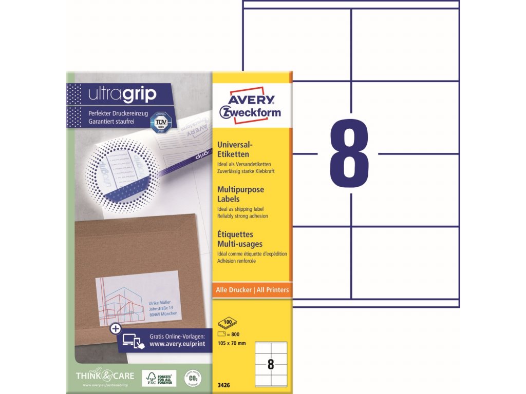 Samolepicí etikety | Avery Zweckform 3426 + online software pro tisk etiket + tiskové šablony ke stažení zdarma