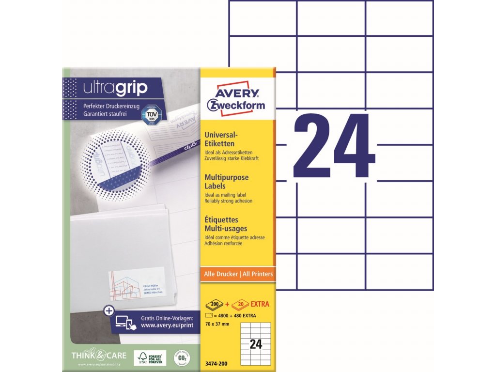 Samolepicí etikety | Avery Zweckform 3474-200 + online software pro tisk etiket + tiskové šablony ke stažení zdarma