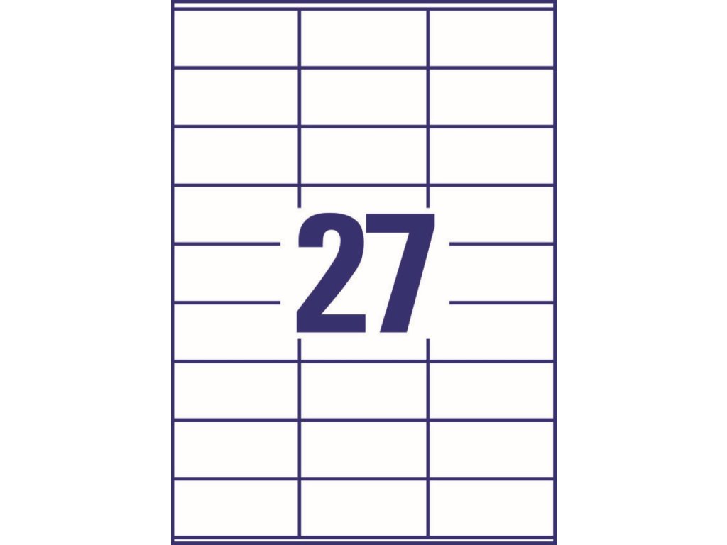 Balení obsahuje 2 700 ks etiket (27 ks na archu, 100 archů A4) pro laserové i inkoustové tiskárny.